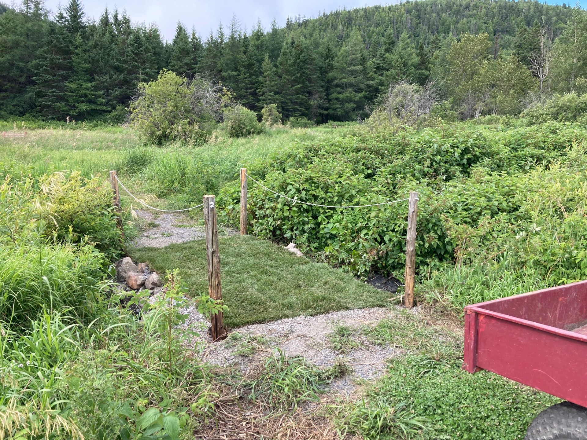 Entretien des sentiers : Assurer le dégagement et la propreté du Sentier des Coulombe (élagage et taille-bordure).